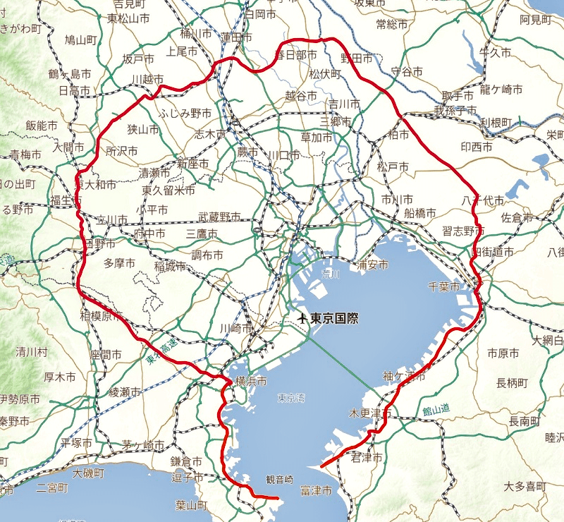 - 現在は、国道14号(船橋〜市原)、国道16号(市原〜袖ヶ浦)、国道127号(袖ヶ浦〜館山)など。