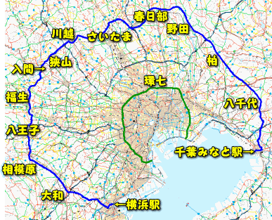 - 東京都心部を中心軸として、神奈川県横浜市西区の高島町交差点を起点に、横浜市、東京都町田市、神奈川県相模原市、東京都八王子市、埼玉県川越市・さいたま市、千葉県柏市・千葉市・八千代市・木更津市を経由して、高島町交差点を終点とする約331kmの一般国道の路線である。